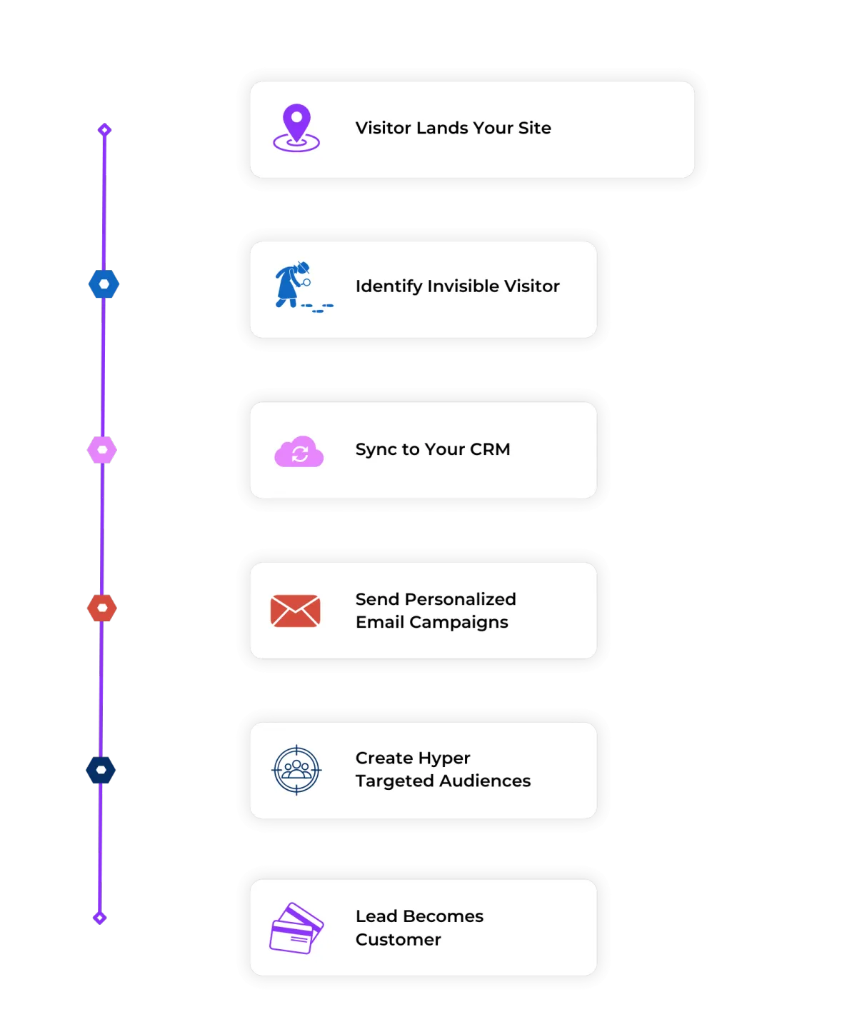 Lead Detector can identify visitors at an individual device level, and runs a waterfall of events to verify the visitor is the actual individual by matching hashed data shared between the users device and the browser.