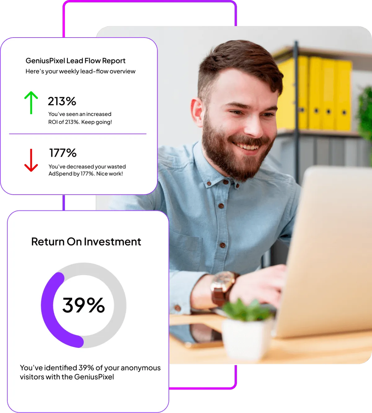 Our AI Powered GeniusPixel technology ensures your custom audiences display ads to the right in-market audiences meaning less wasted ad spend and a 200-400% higher ROI on your marketing budget.