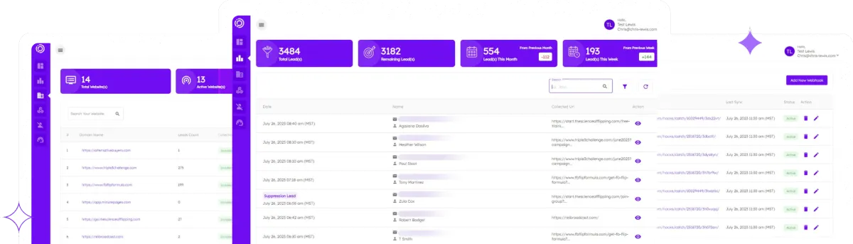 With a few quick clicks, Lead Detector integrates with your site, immediately going to work identifying your visitors, collecting their details, and routing everything straight to your dashboard. With Lead Detector, you get: